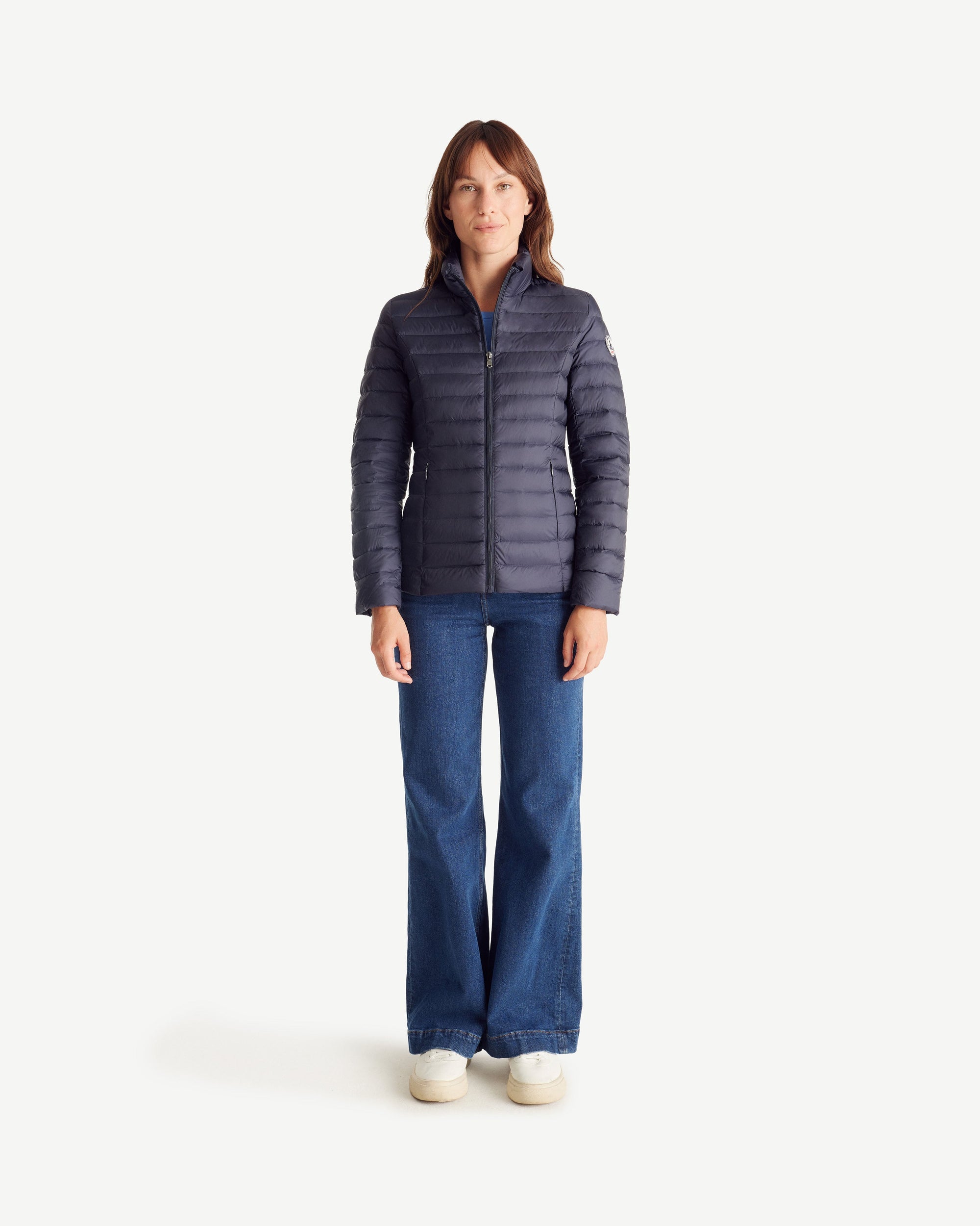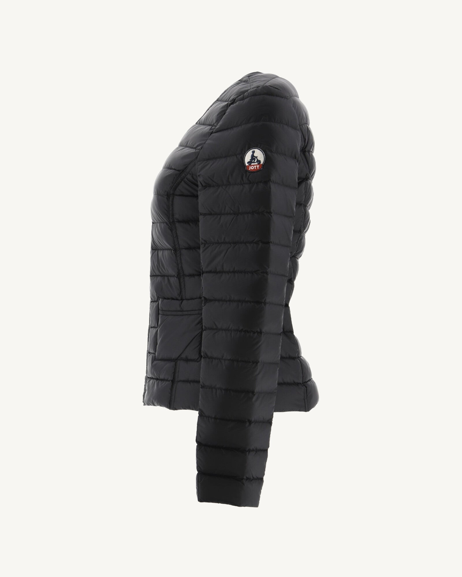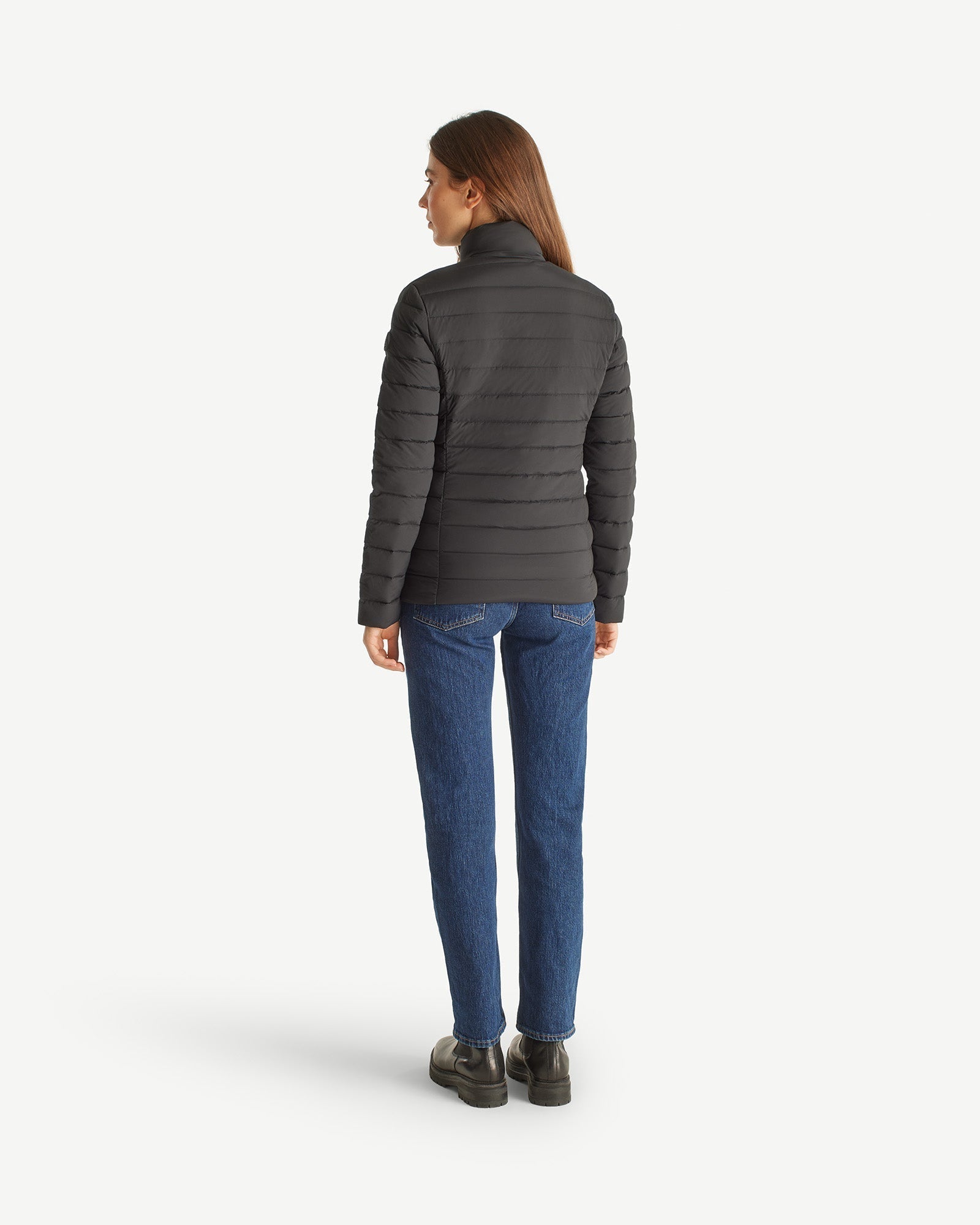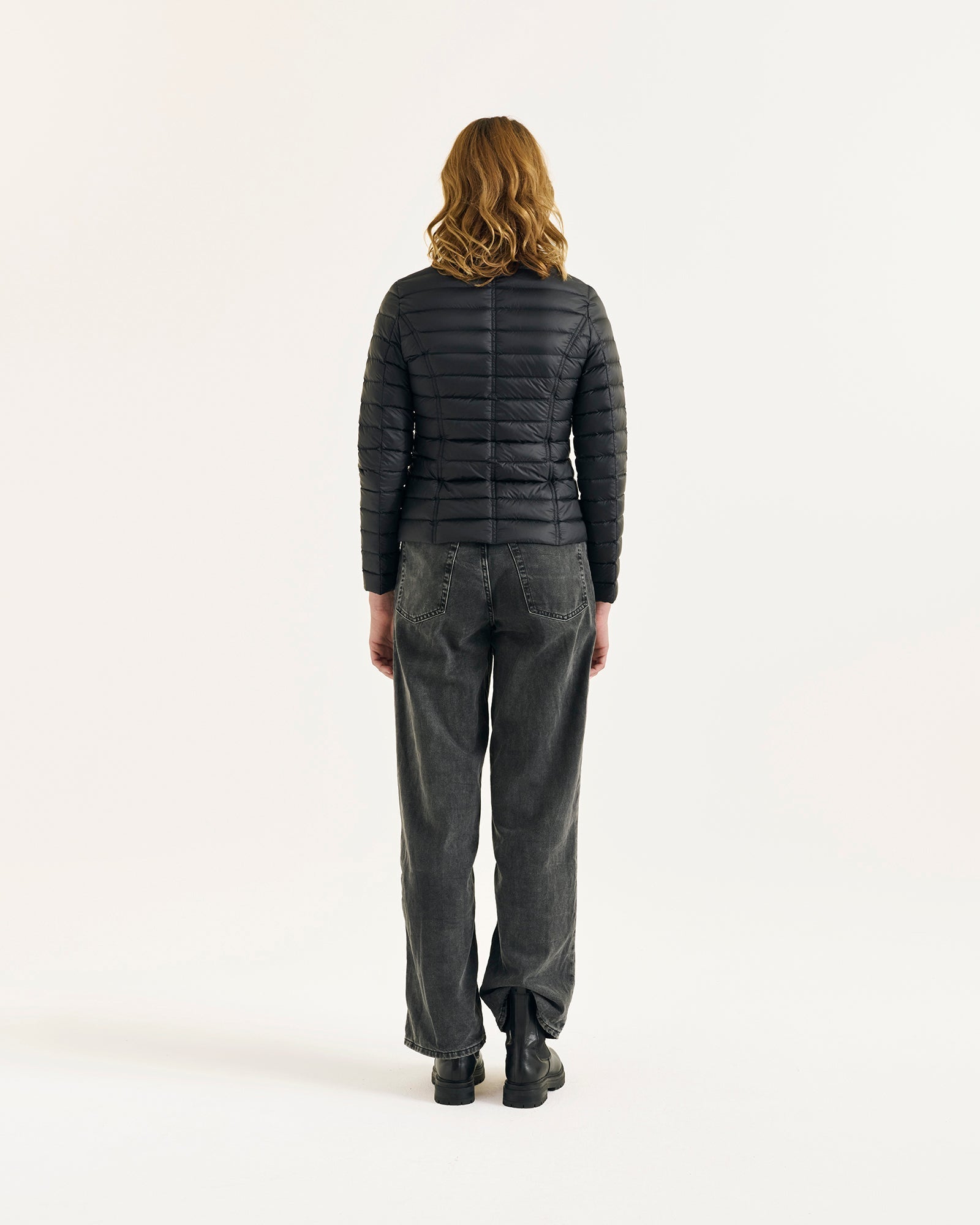 Sans capuche, légère et près du corps grâce à sa coupe cintrée, la doudoune CHA joue les vedettes, portée seule, mais sait aussi se faire discrète sous votre manteau préféré.