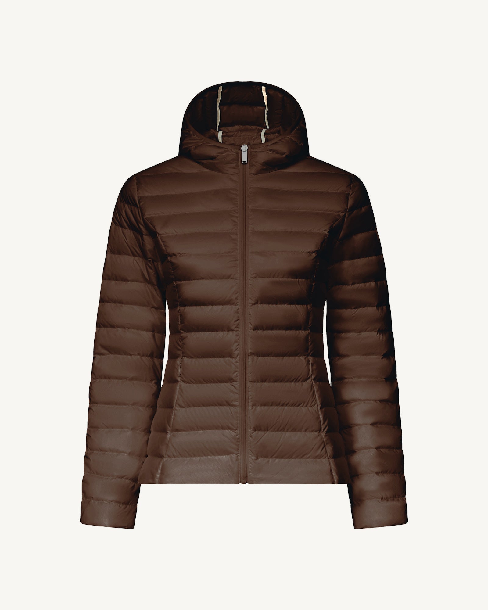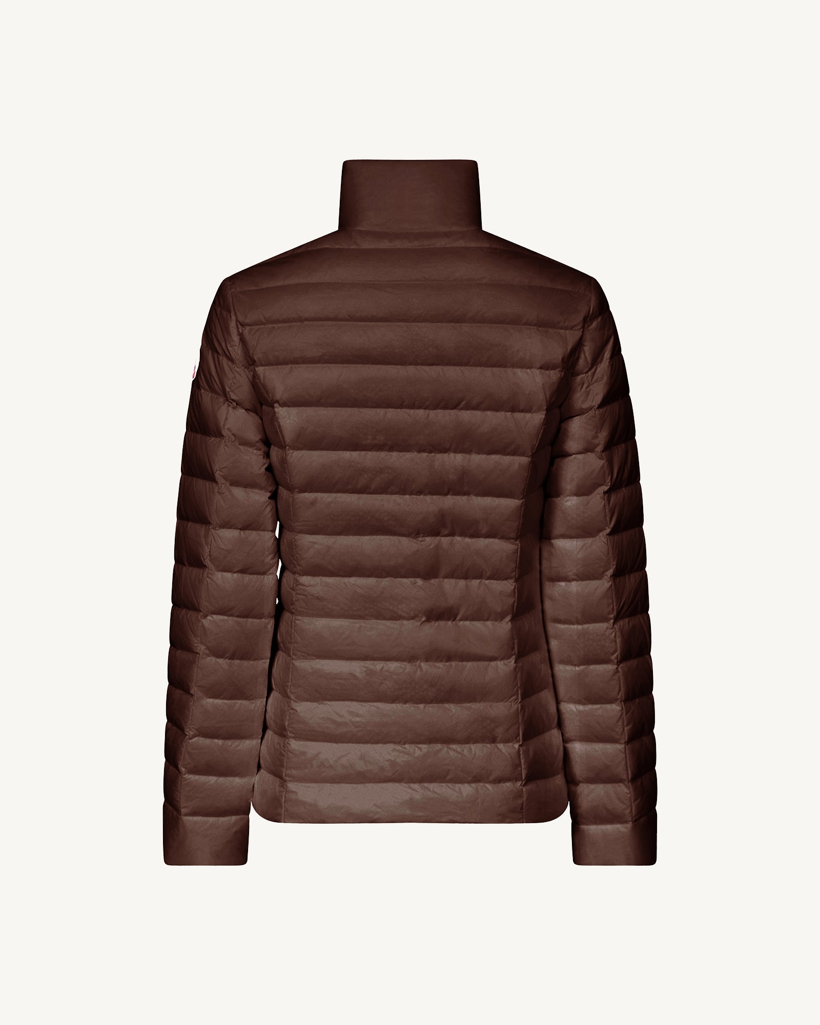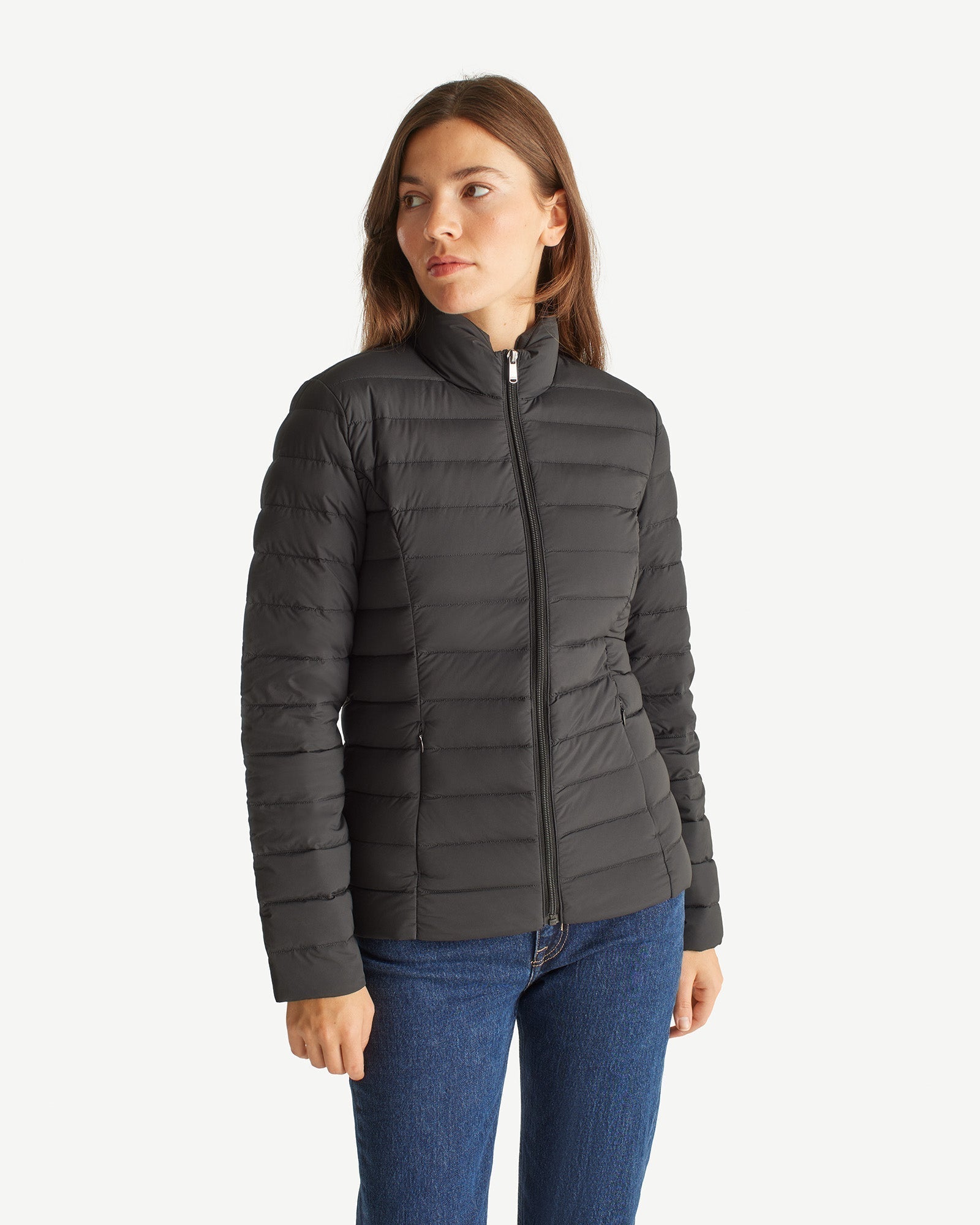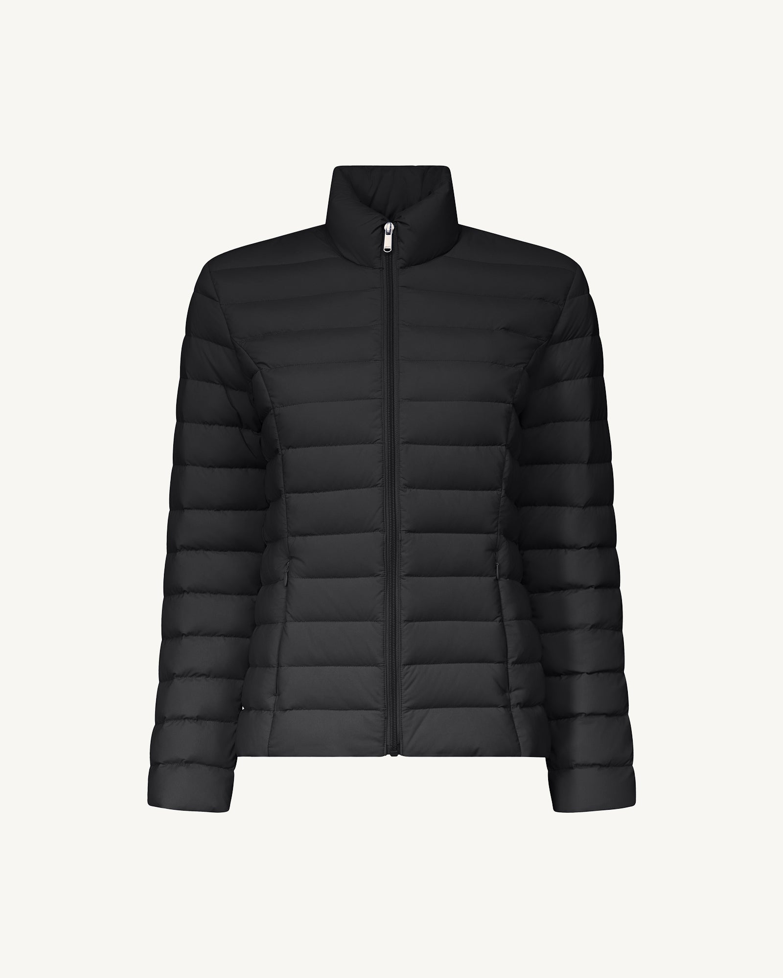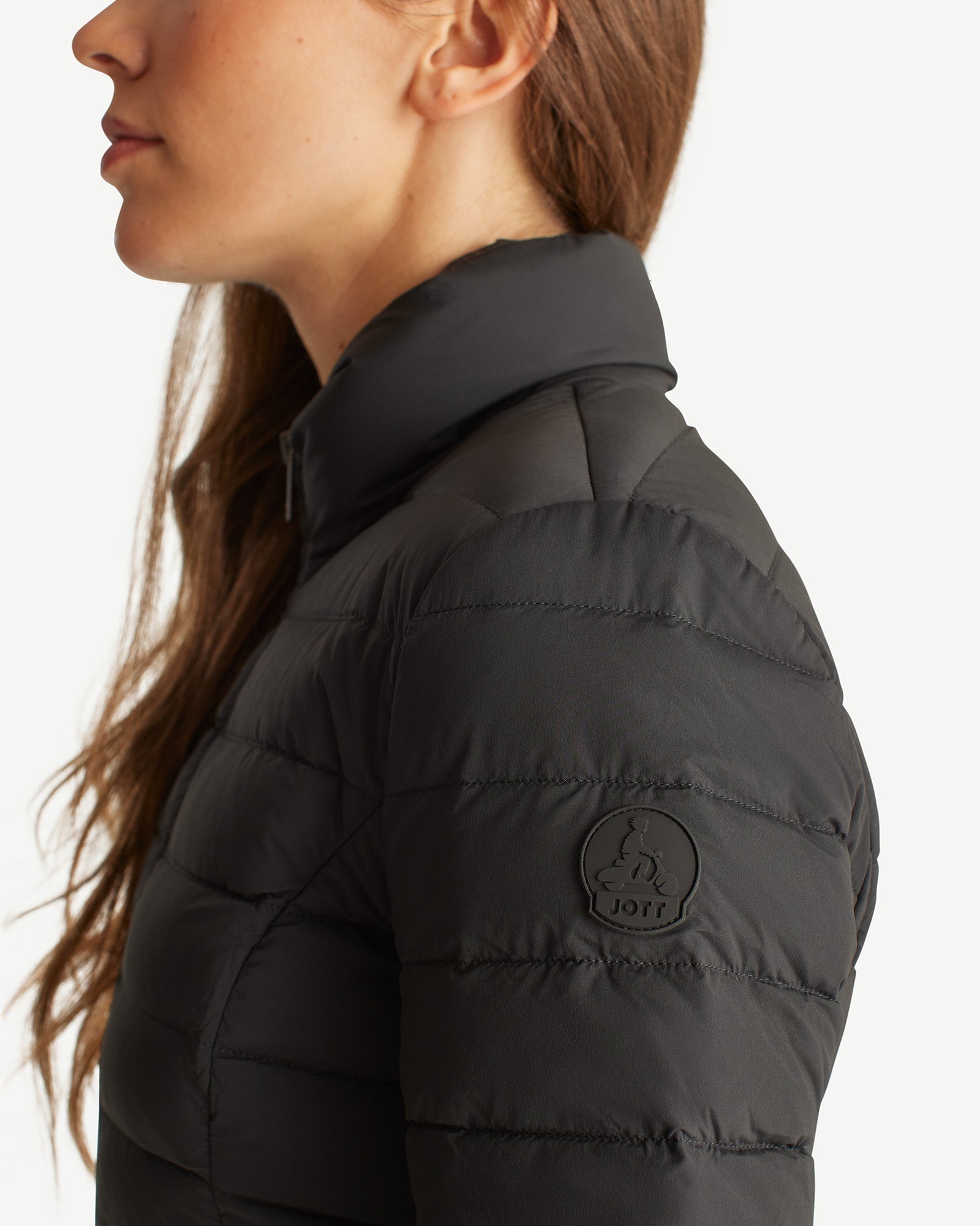 Sans capuche, légère et près du corps grâce à sa coupe cintrée, la doudoune CHA joue les vedettes, portée seule, mais sait aussi se faire discrète sous votre manteau préféré.