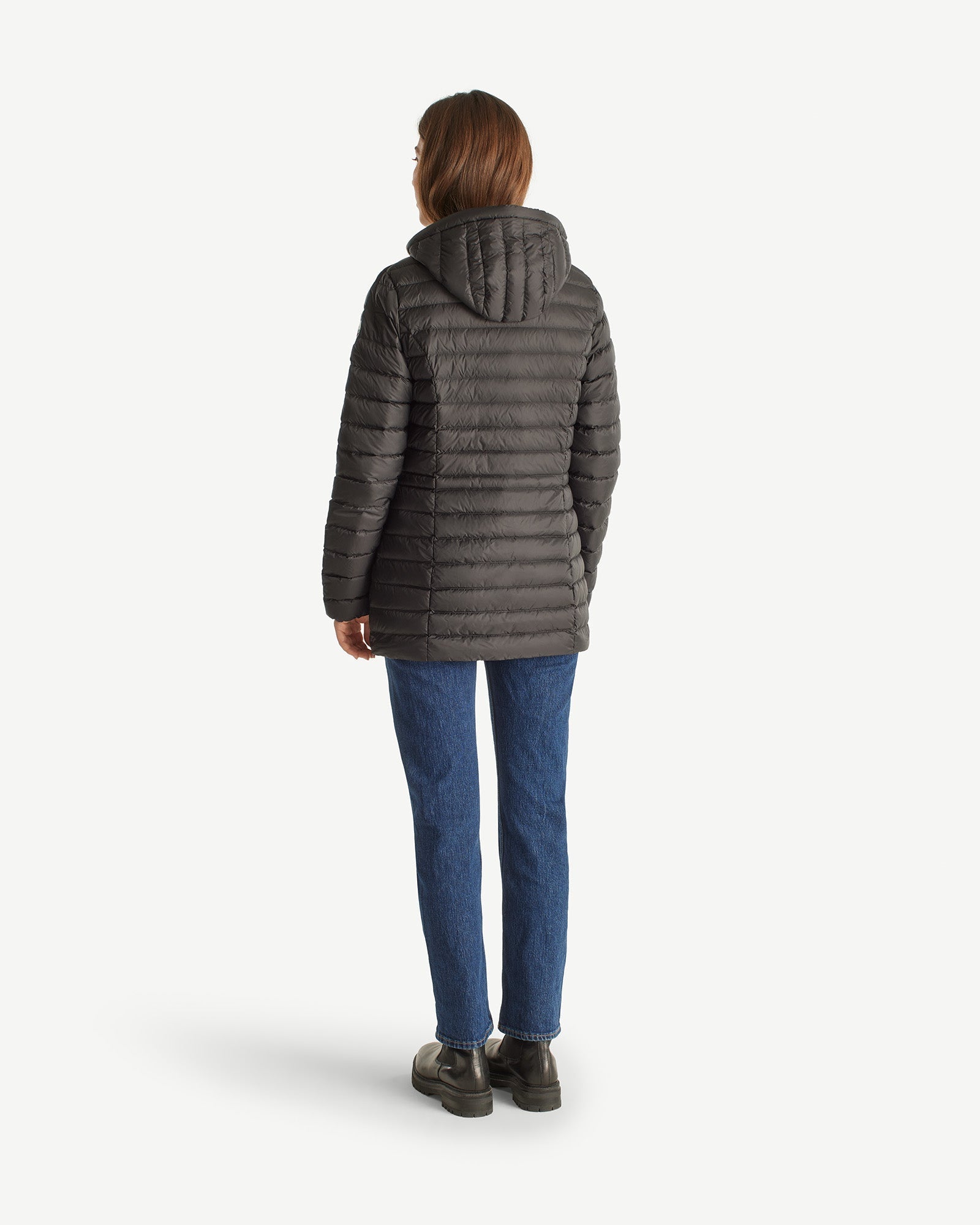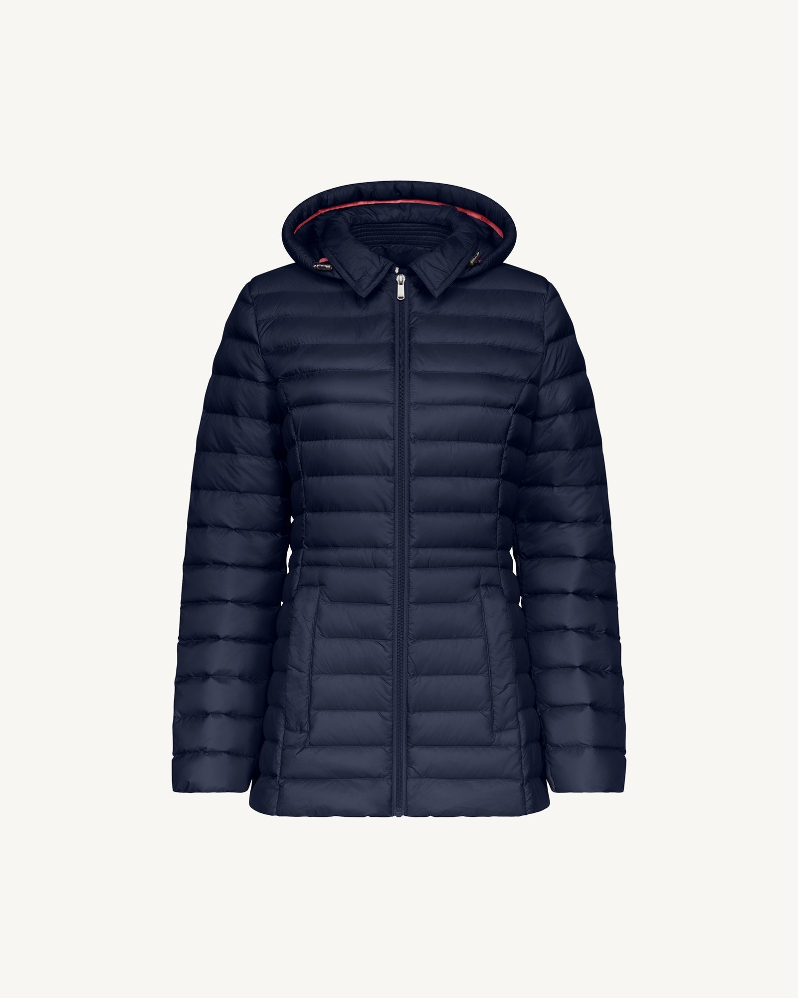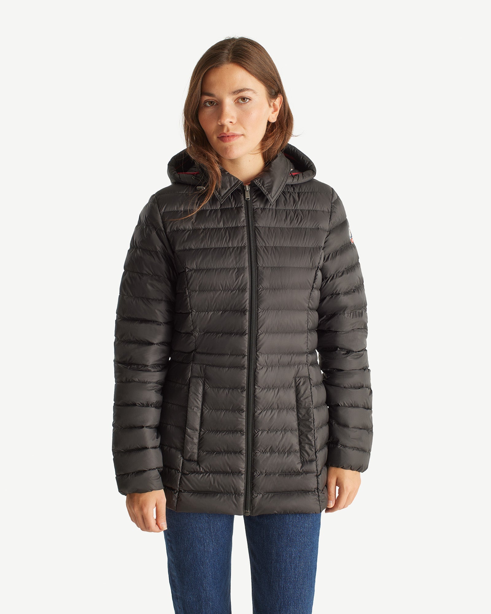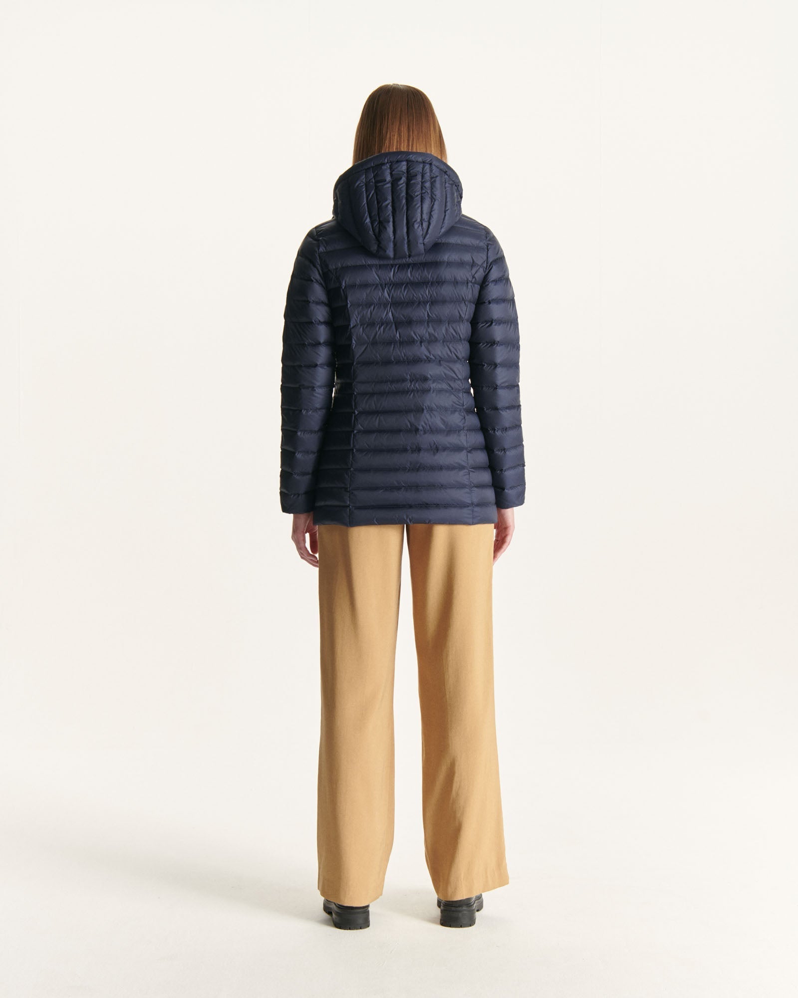 Sans capuche, légère et près du corps grâce à sa coupe cintrée, la doudoune CHA joue les vedettes, portée seule, mais sait aussi se faire discrète sous votre manteau préféré.